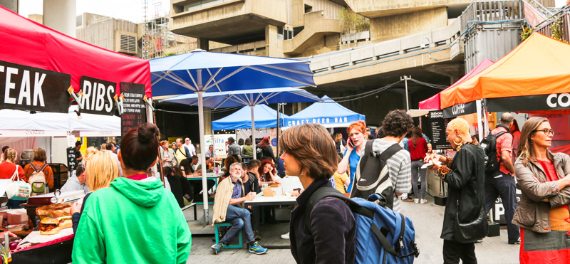 Southbank Centre Food Market est un petit marché réunissant des restaurateurs de qualité. Il se situe sur la rive Sud de la Tamise, au niveau du Southbank Centre, comme son nom l’indique et se déroule uniquement du vendredi au dimanche.