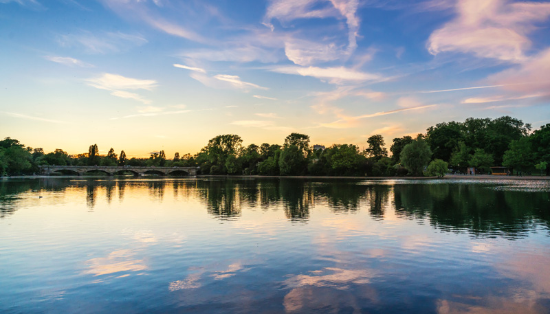 Malgré tout l’ensemble forme une zone homogène, et particulièrement vaste (250 hectares). Il fait bon s’y promener, faire son jogging ou une petite ballade en vélo. “The Serpentine”, le plan d’eau du parc, permet la pratique de plusieurs activités nautiques ou aquatiques. C’est d’ailleurs le lac artificiel qui marque la frontière avec les jardins de Kensington.