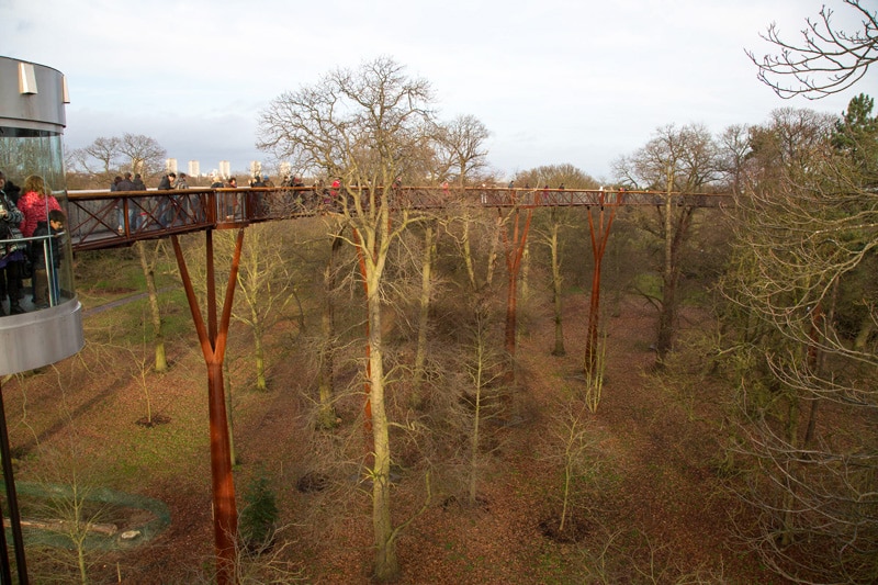 Une autre attraction populaire à Kew Gardens est le Treetop Walkway, une passerelle en hauteur à 18 mètres au-dessus du sol offrant une vue imprenable sur les jardins. La promenade se termine par une tour d’observation de 250 mètres de haut, offrant une vue panoramique sur Londres et la Tamise.